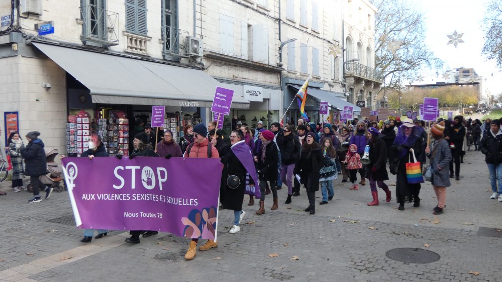 Nous étions plus de 200 à défiler dans les rues de Niort le 22 novembre 2025 à l’occasion de la Journée internationale de lutte contre les violences faites aux femmes.